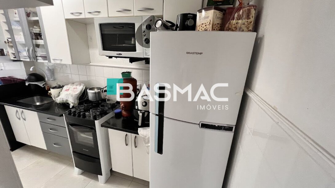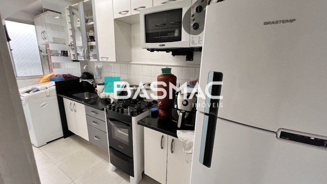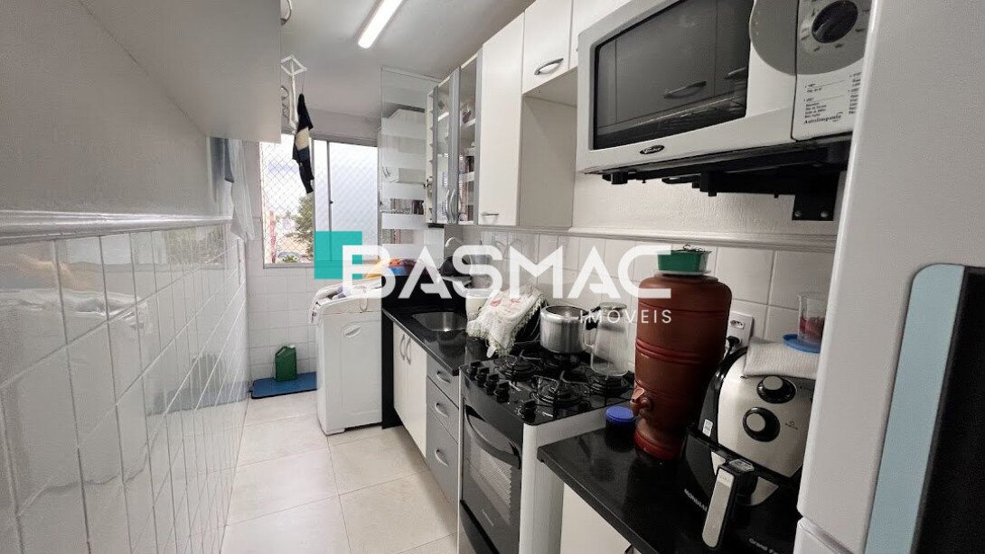São dois blocos, 20 apartamentos em cada bloco. Tem terraço com churrasqueira para uso comum. A portaria é semi presencial, a zeladora fica no horário de expediente. O acesso é por tag e controle remoto no portão dos carros.
