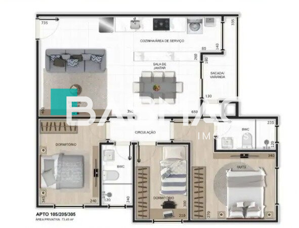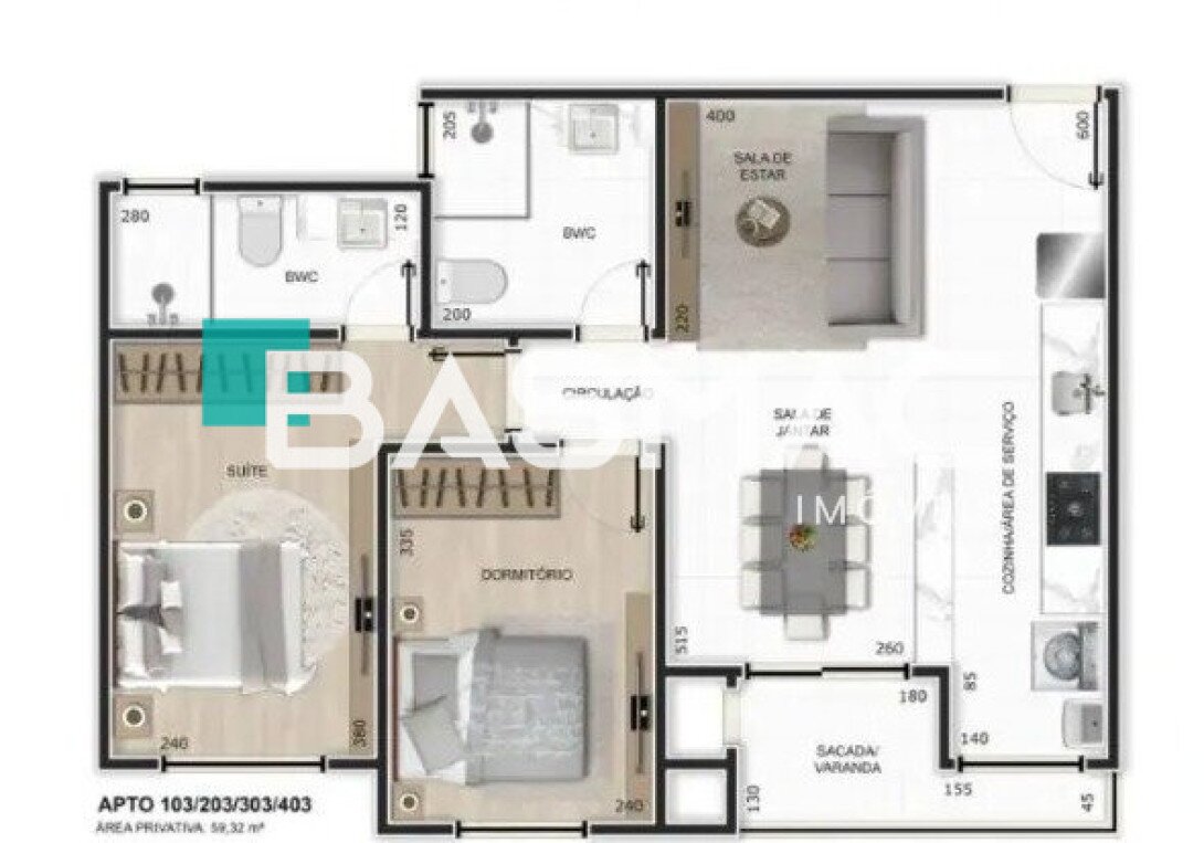 | 2 | Dormitórios, sendo 01 suíte |