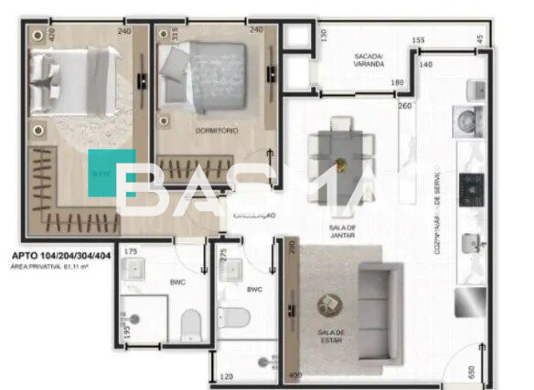 | Área privativa | 61,11 m² |